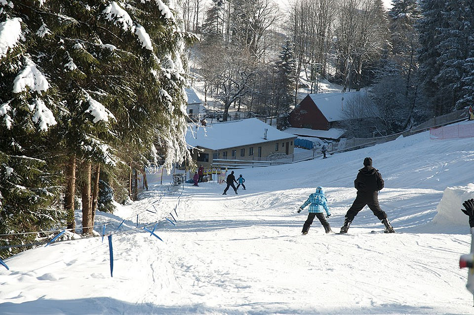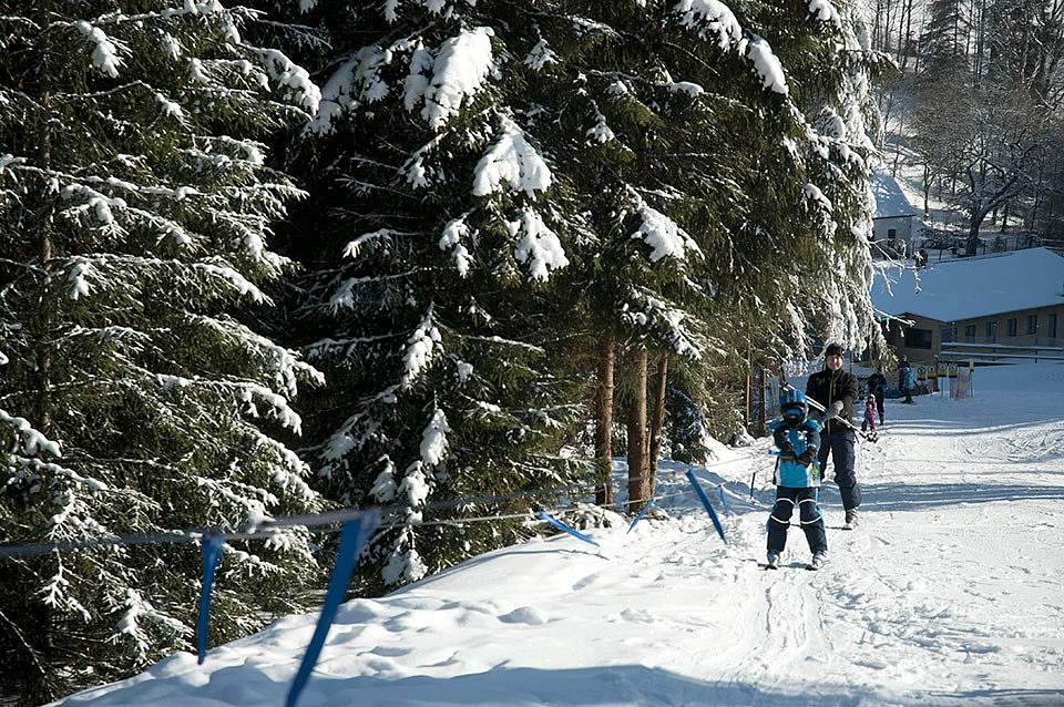Mírná sjezdovka s dětským vlekem pro nejmenší lyžaře.